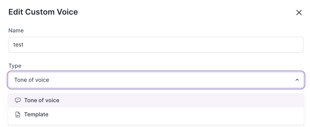Unlike the dynamic nature of tone, which can shift depending on context, the Custom Voice option aims for consistency - all while serving a baseline style that ensures all communication reflects a single personality or brand identity, regardless of your audience medium.