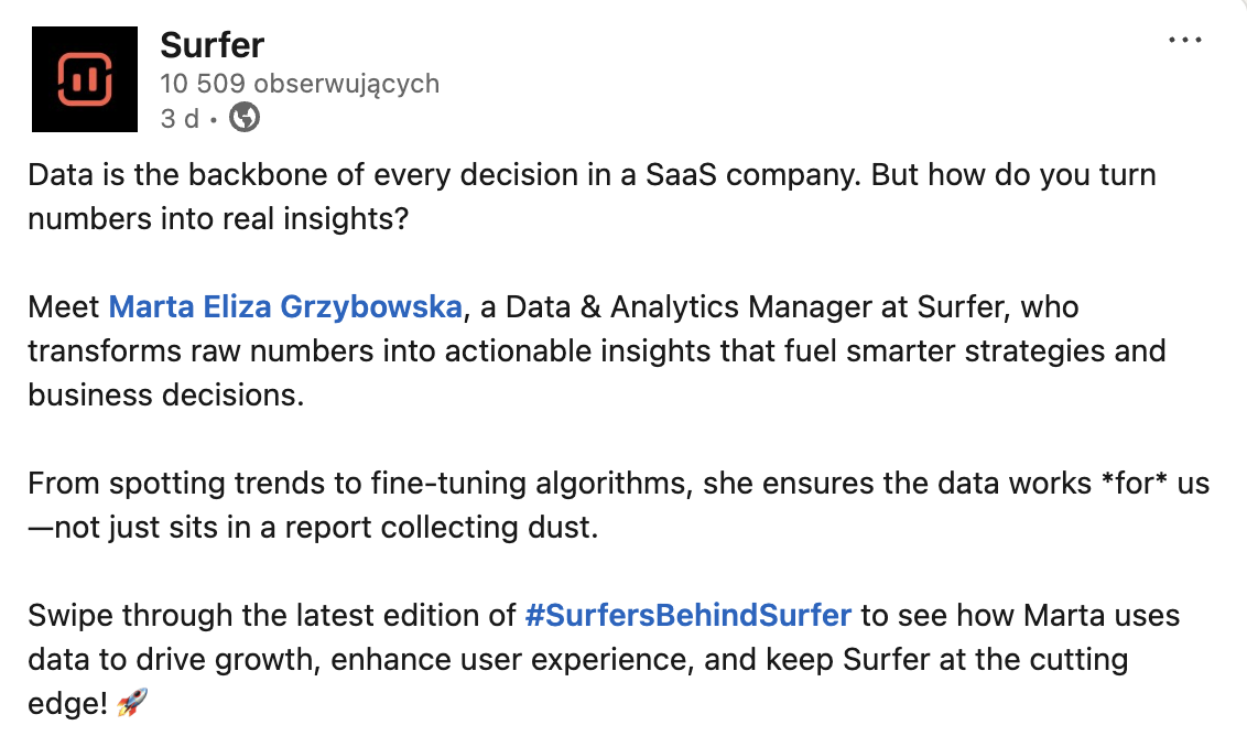 Swipe through the latest edition of #SurfersBehindSurfer to see how Marta uses data to drive growth, enhance user experience, and keep Surfer at the cutting edge! 🚀