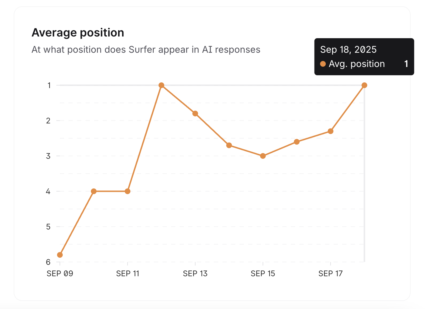 This tells you the typical ranking of your brand when it’s mentioned. The closer the number is to 1, the earlier (and more prominently) your brand tends to appear.