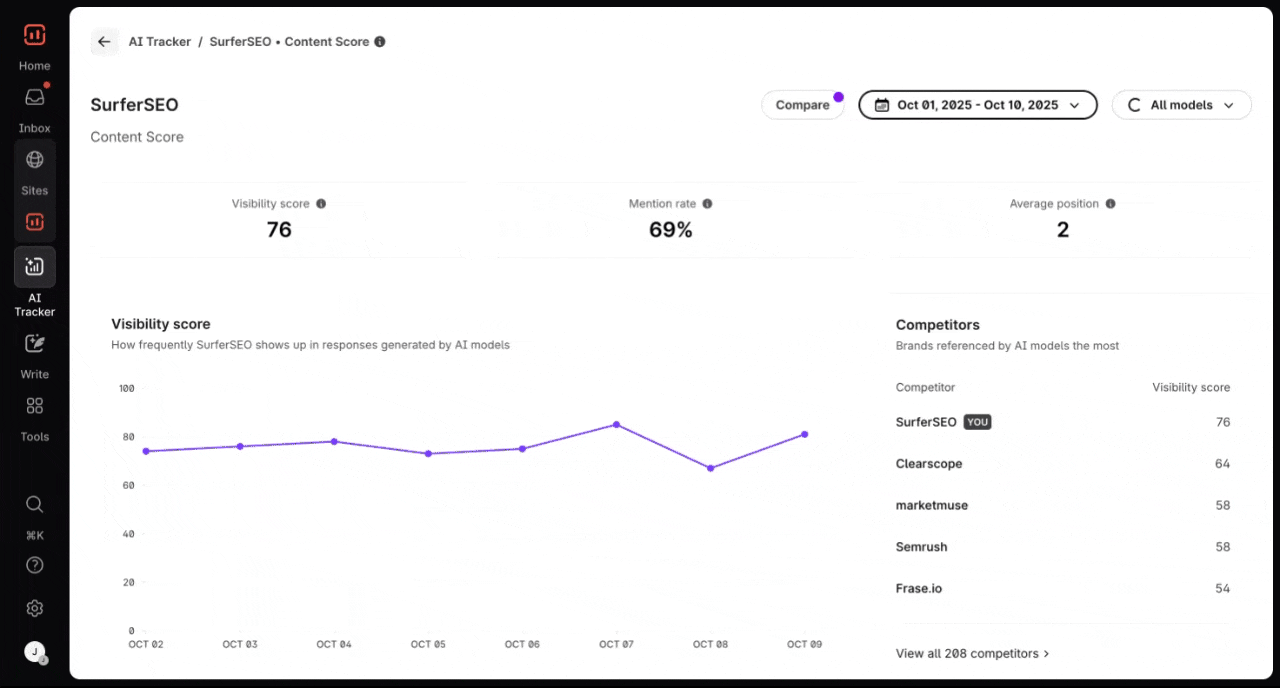 From here, you can monitor visibility, track mentions, and compare positions across the models that matter most to your business. 🚀