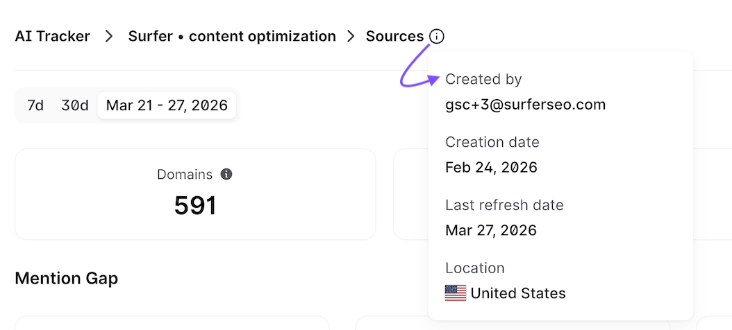 Domains: These are the unique domains found in LLM-generated responses. Take surferseo.com , for example.