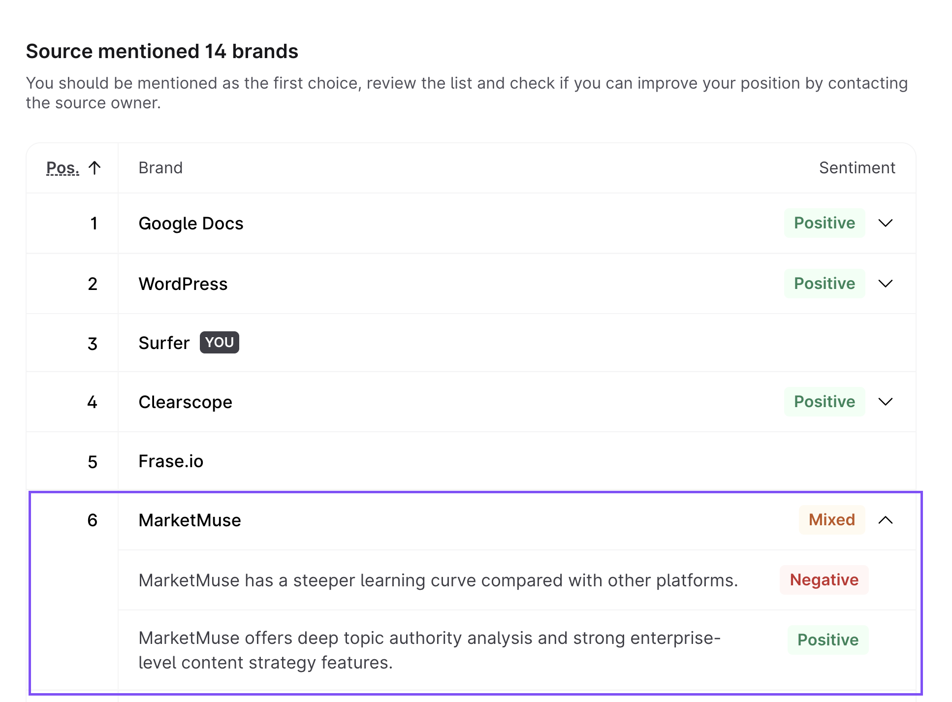 Mentioned - whether your brand is mentioned in the source