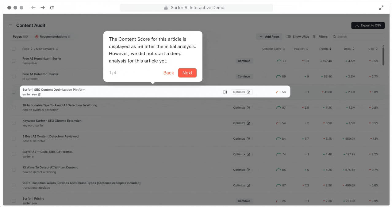So, because of all that, the first Content Score you see in the editor might not be a perfect match for the one you initially see in Content Audit reports. And since "Best Opportunities" suggestions pop up based on that score, those might look a bit different, too.