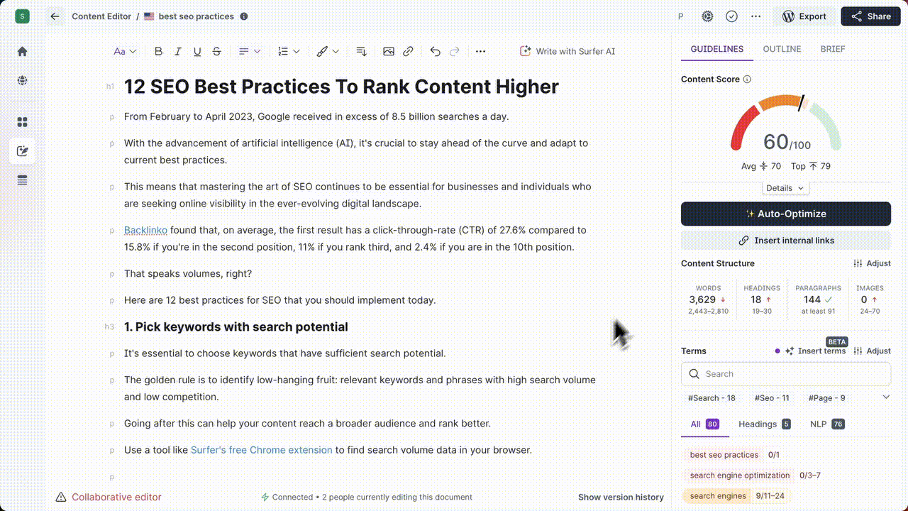 Writing your articles from scratch while making sure they're SEO-optimized can be daunting and, sometimes, may also result in writer's block. You can maximize the Auto-Optimize feature to boost your content and Content Score.