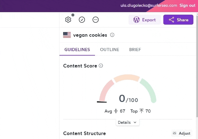 ⚠️ This integration is not bi-directional, meaning that only the guidelines are transferred between the tools, but the content itself is not. So if you already have some parts of your article written in your Editor, you must copy it manually (and the other way around).