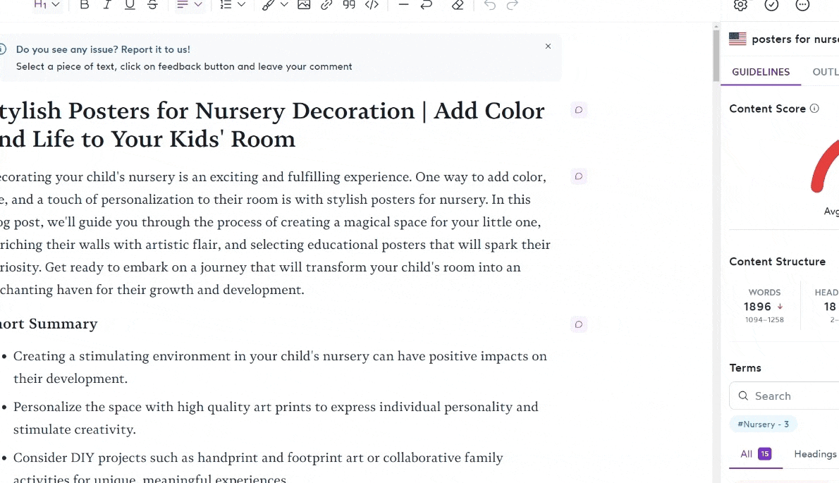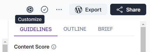 Our Customization Panel inside Content Editor allows you to adjust your guidelines before you dive into writing. You can find it under the gear icon.