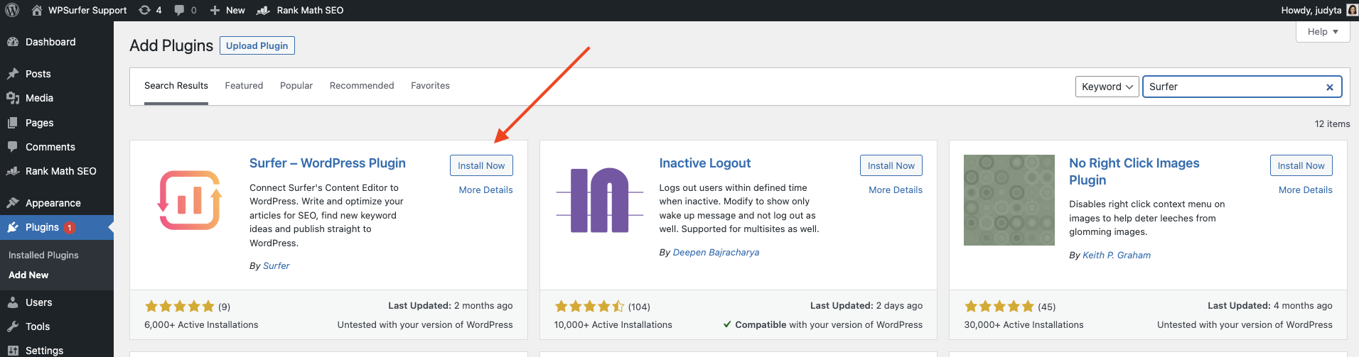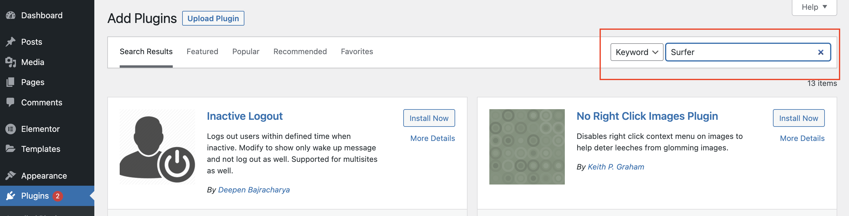 You will be directed to the plugins list. Now, you can look for a Surfer tab in the left bar and click on it.