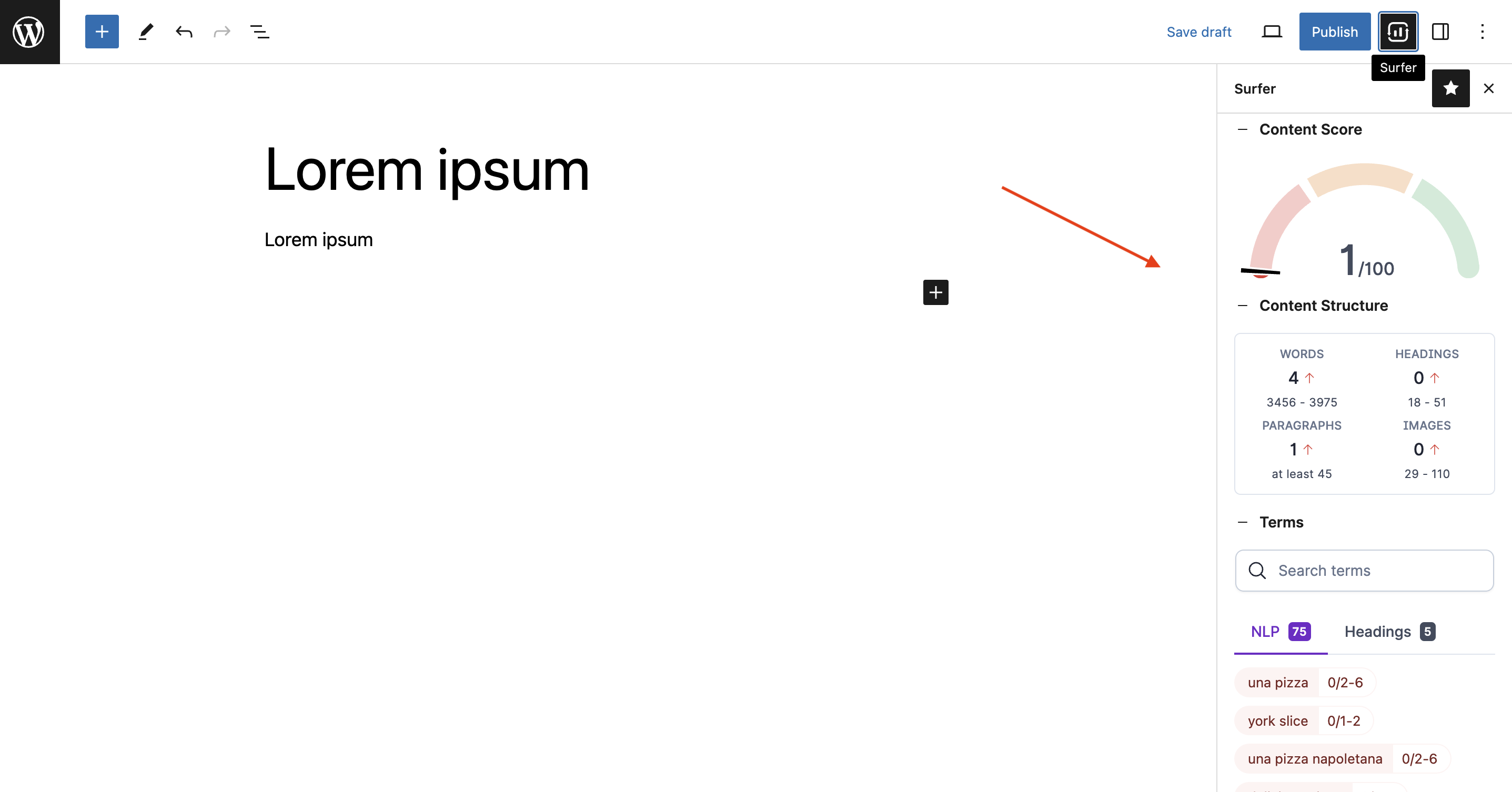 New! Now, you can also work directly in WordPress by connecting your WP post or page with Surfer's Content Editor and the Guidelines sidebar presented directly in WordPress!