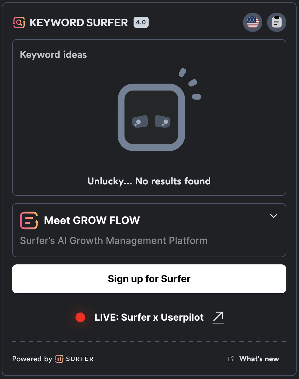 If Surfer does not have your keyword in the database, try another one that may be a bit more popular.