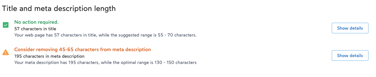 Surfer will check how long your title and meta description elements are compared to those of your competitors.