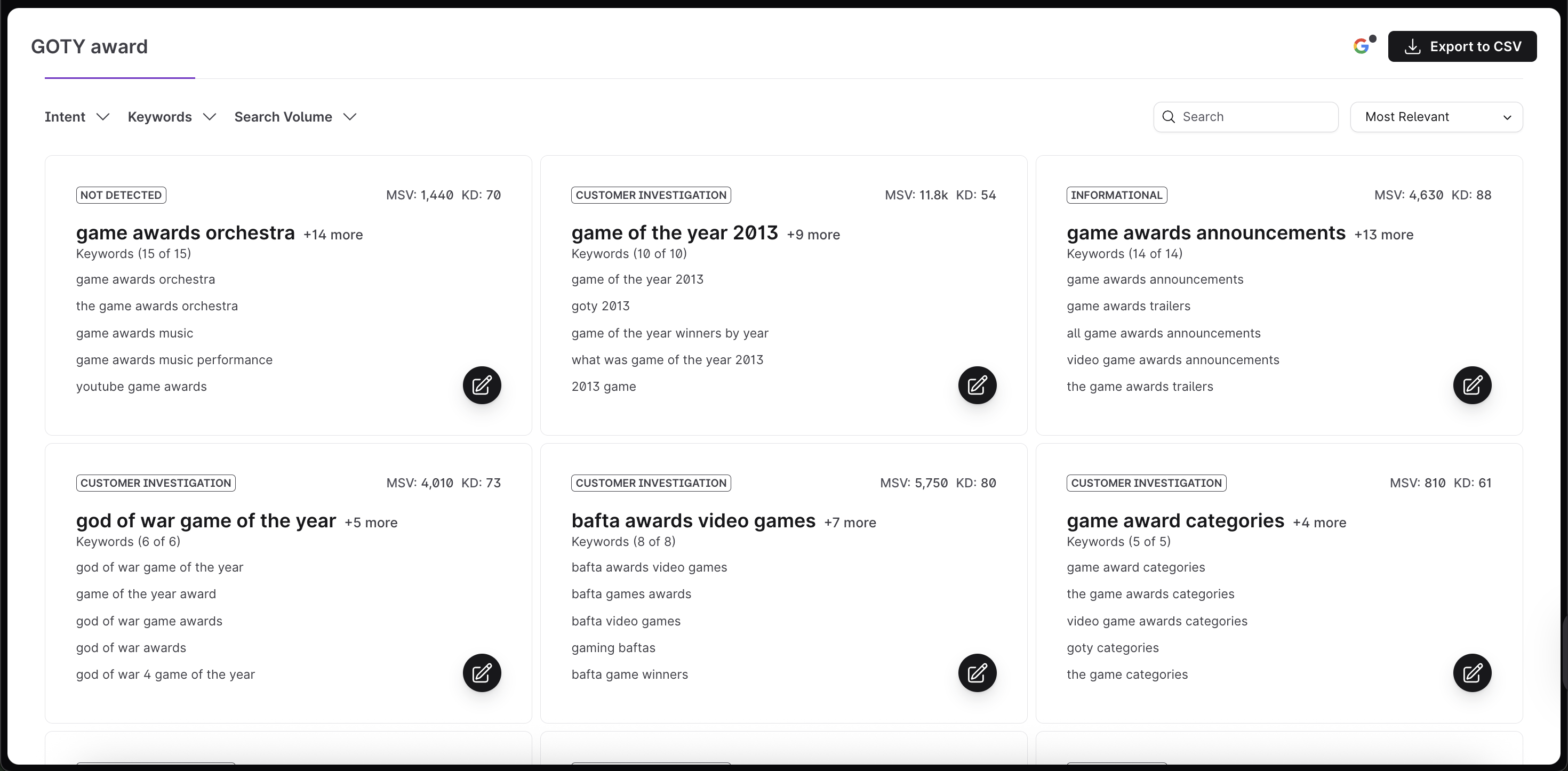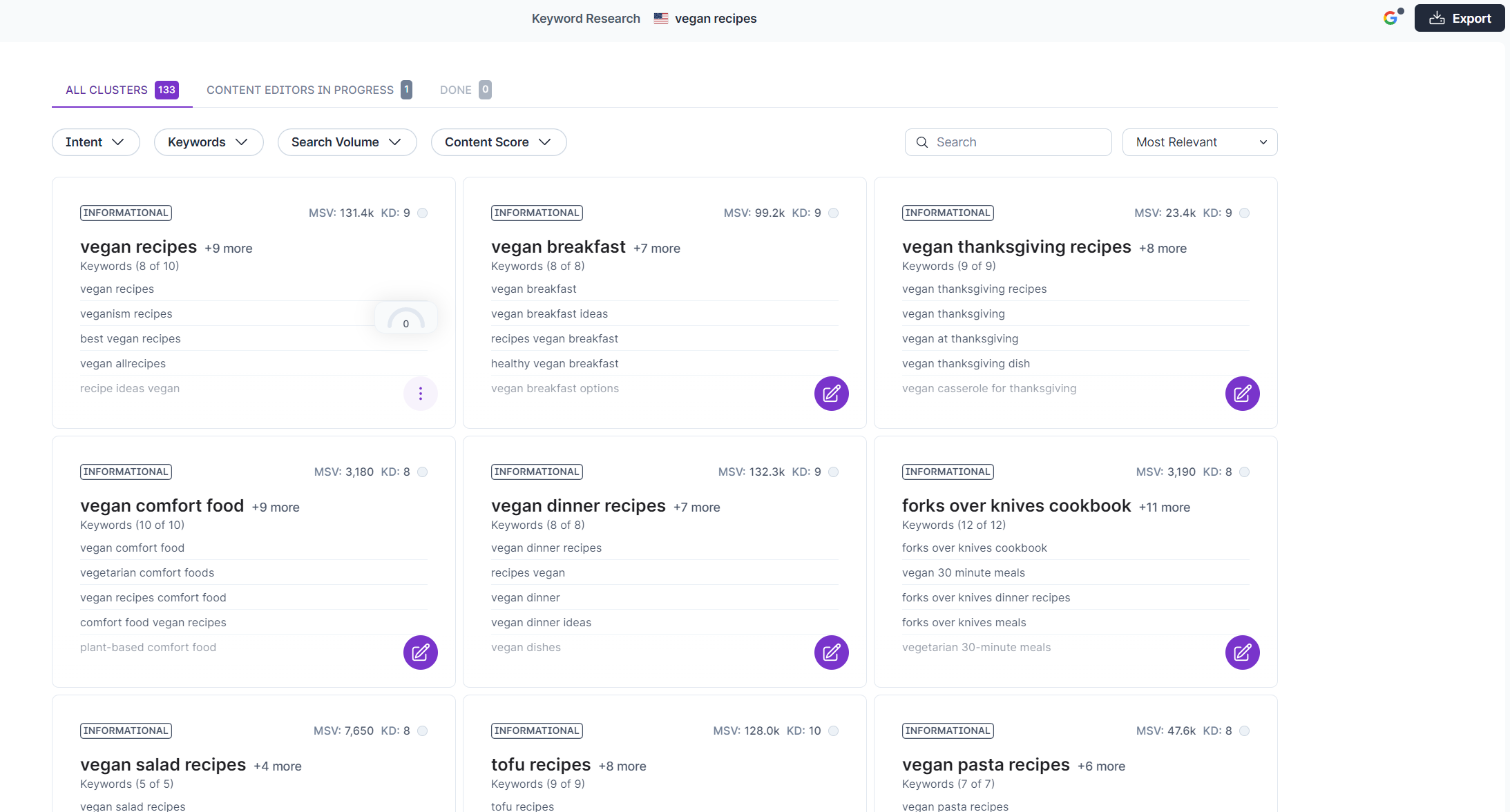 Clusters are organized by their relevance to each other, to the main keyword, and to the search intent they fulfill.