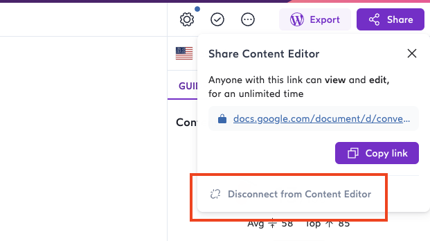 In Surfer β open the content editor from the list in Surfer Β» click the "Share" button on the right Β» click "Disconnect from Content Editor"