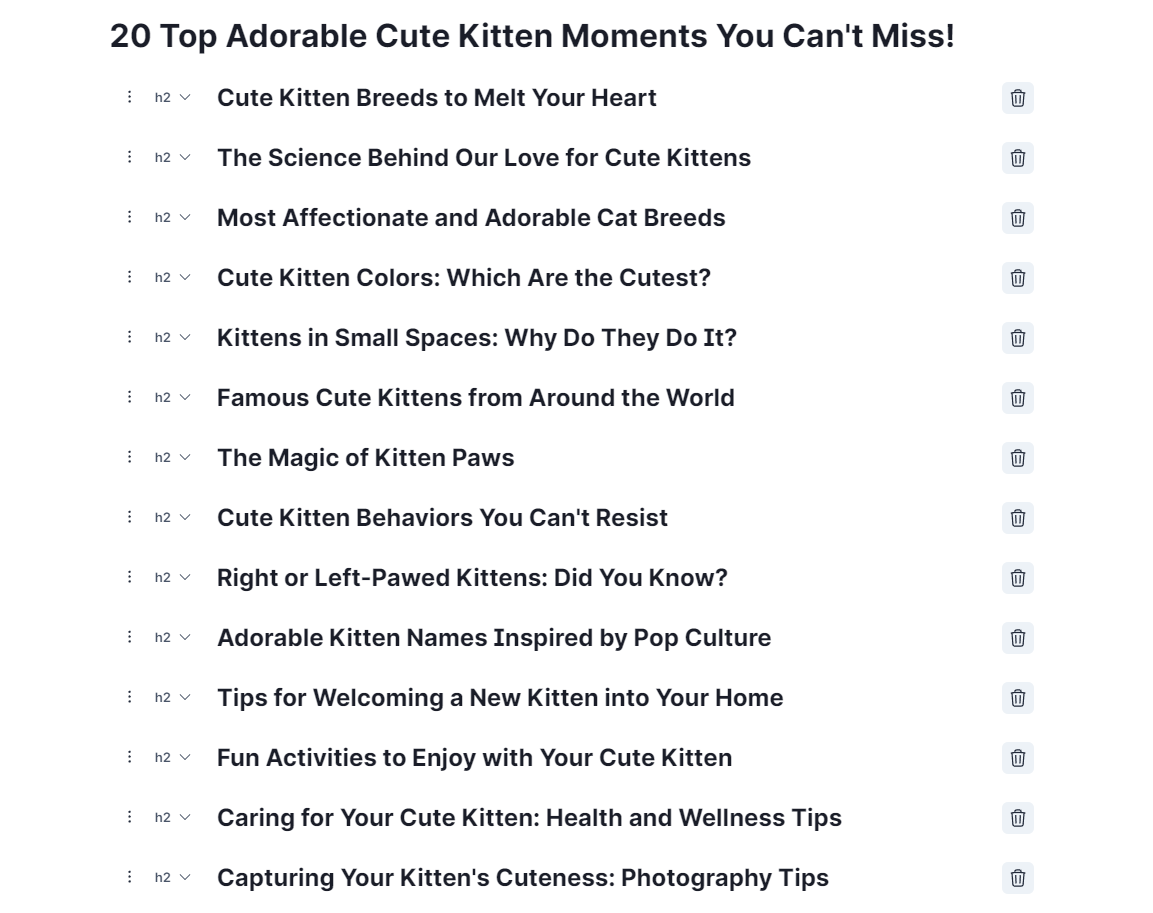 There is no minimum or maximum number of Writing Points in the outline. However, the more complex your outline is, the longer it may take for the article to be generated.