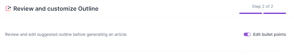 No, customizing Writing Points is not necessary, but it's an important step in reviewing the outline, giving you more control and flexibility. With the option toggled off, we will use the default Bullet Points as a source of knowledge & context for the article.