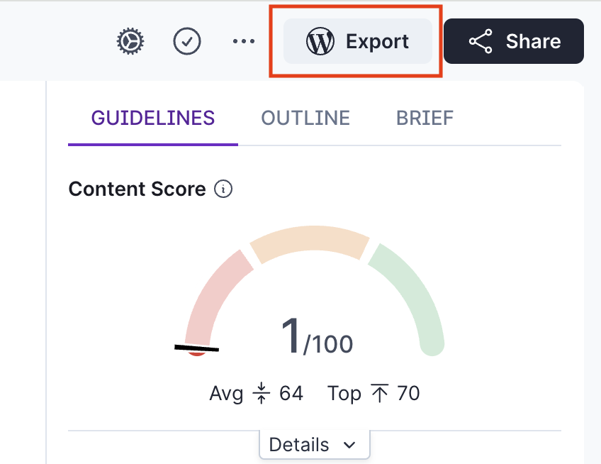 1. Click the "Export" button with the WordPress icon in the top right corner of the Content Editor.