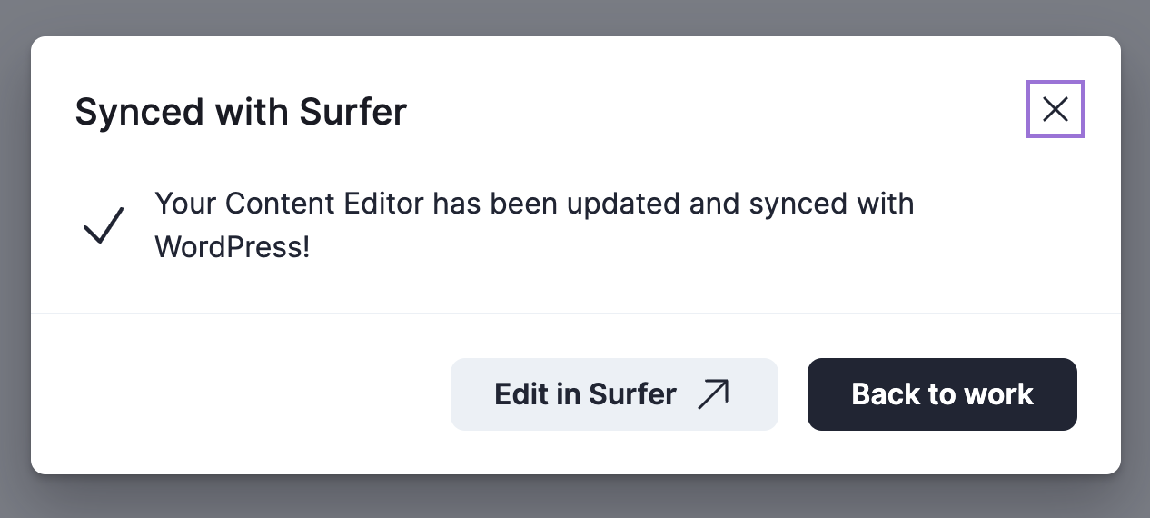 4. After the export is done, start editing in Surfer (or stay in WordPress).