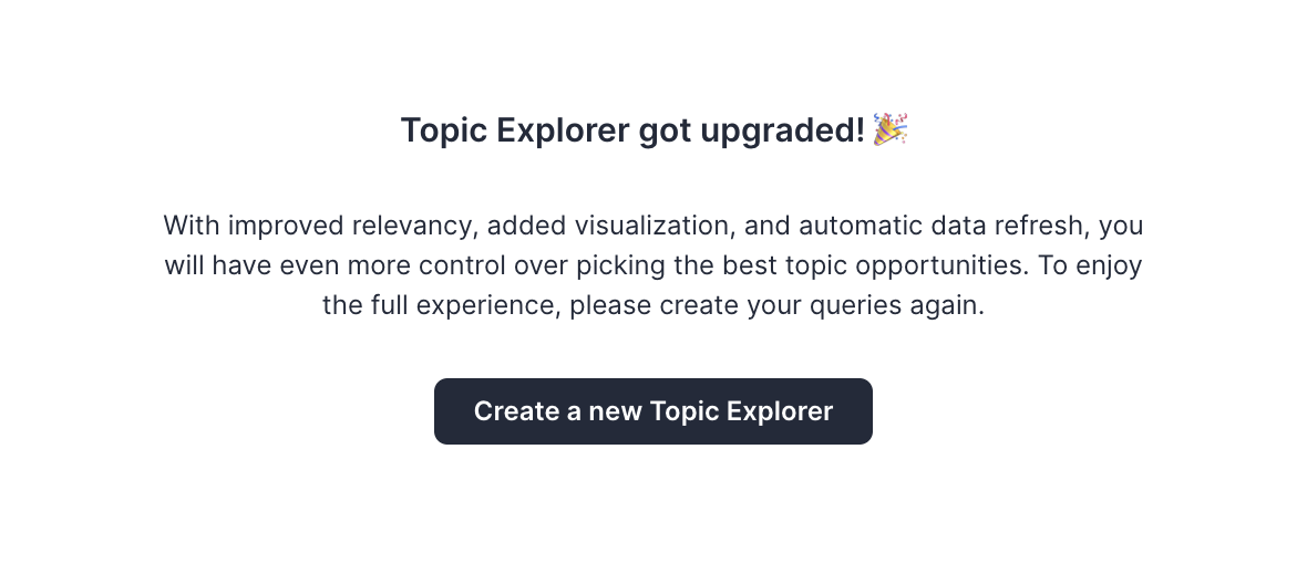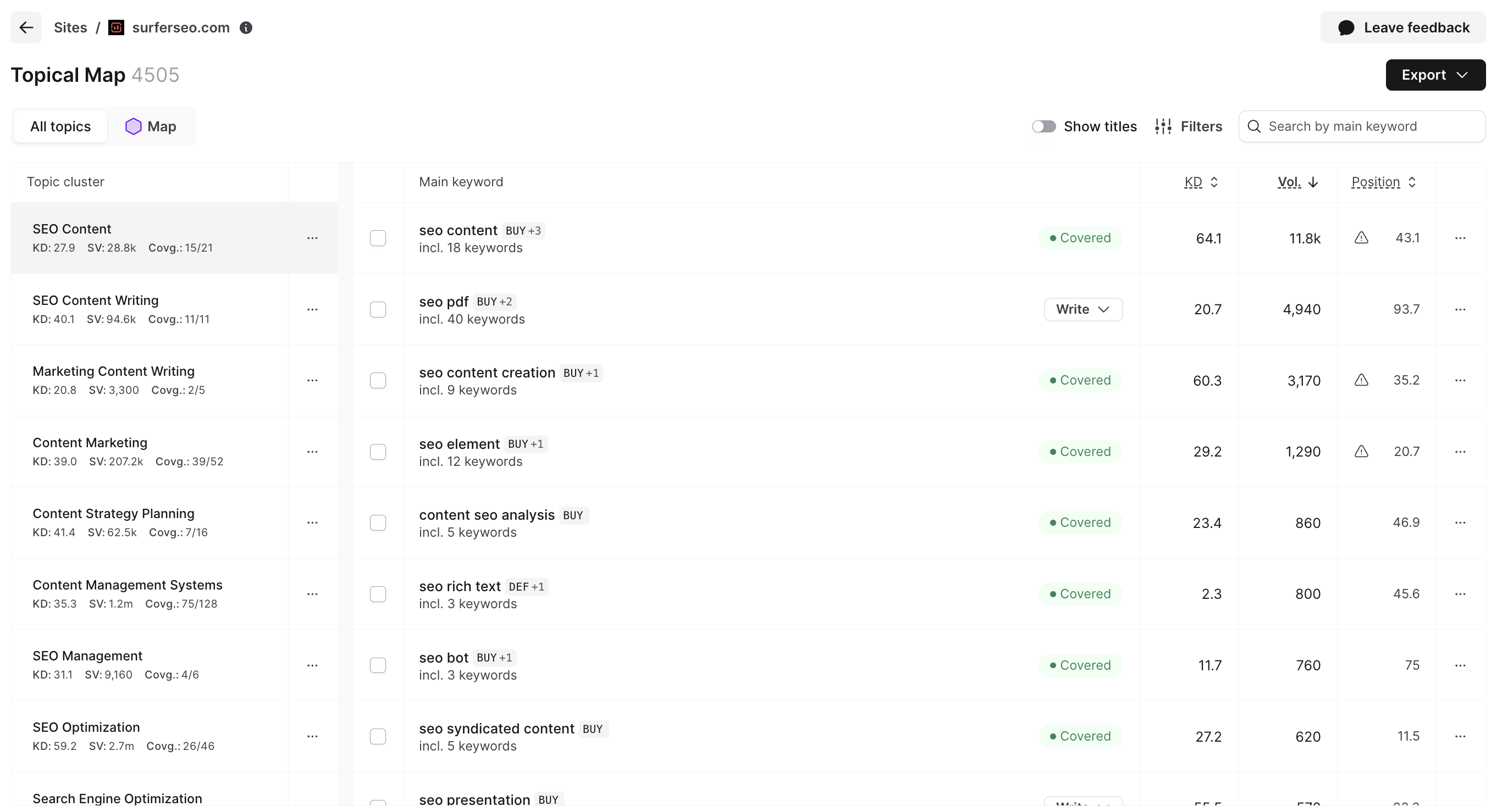 Formerly known as Topic Explorer, Surfer's Topical Map is here to help you with finding new article ideas, filling out any gaps in your content, and building your Topical Authority.