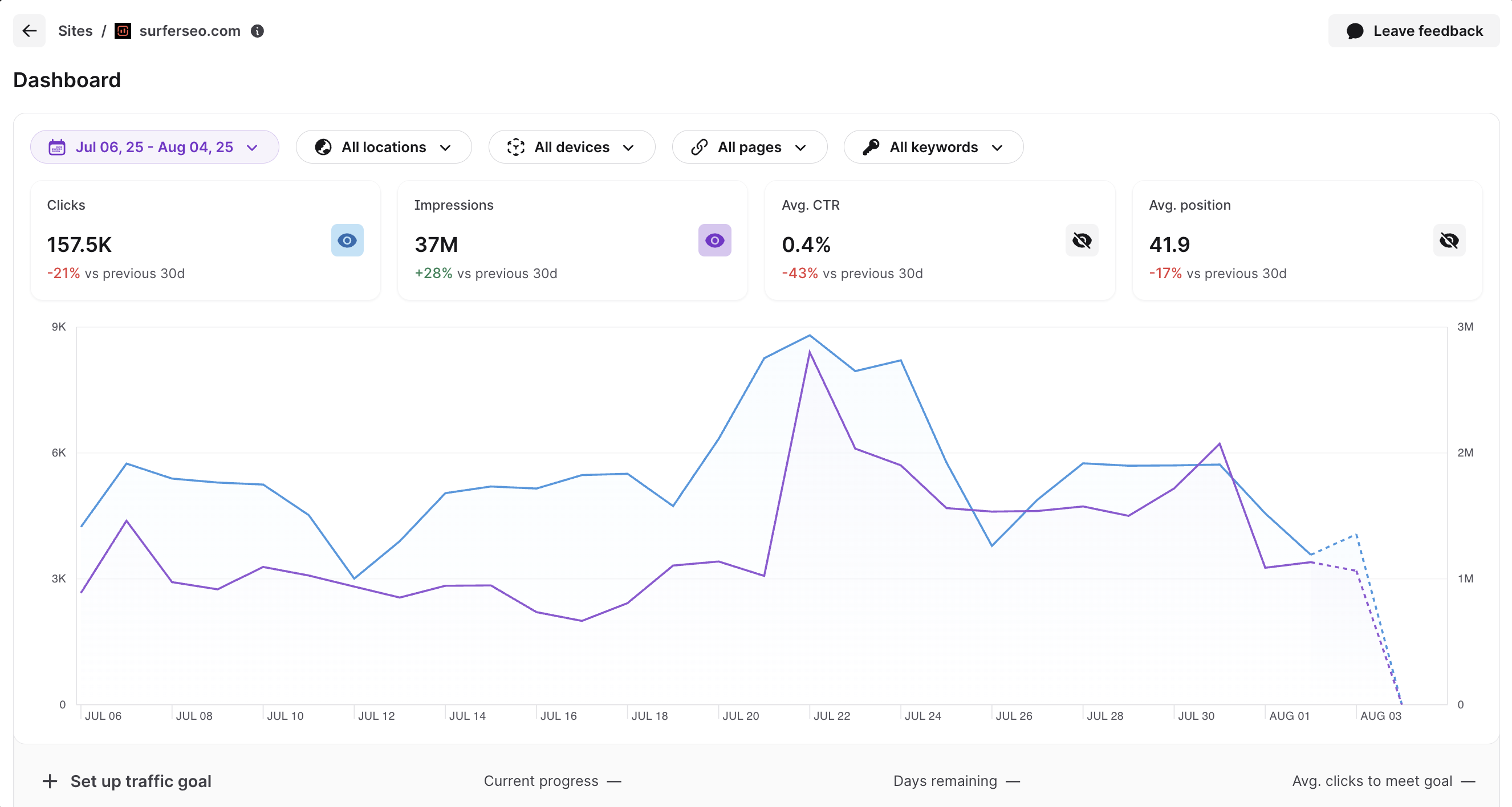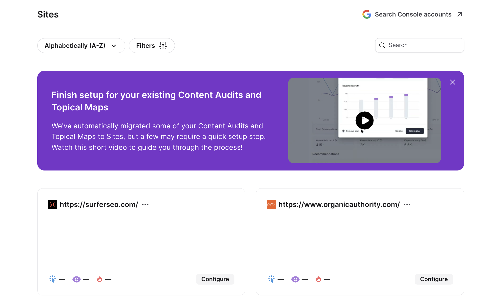 This is your best option as it offers more accurate suggestions and insights based on your Google Search Console data, along with an overview of your topical authority to understand your strengths and areas of improvement better.