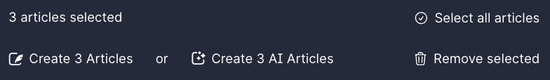 Select in bulk: You can now select multiple articles at once to archive or create CE and AI articles in bulk (below is the amplified screenshot for the pop-up menu when selecting one or more articles).