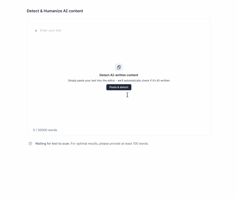 Please make sure your text is at least 100 words long. This minimum length allows us to provide you with the best results.