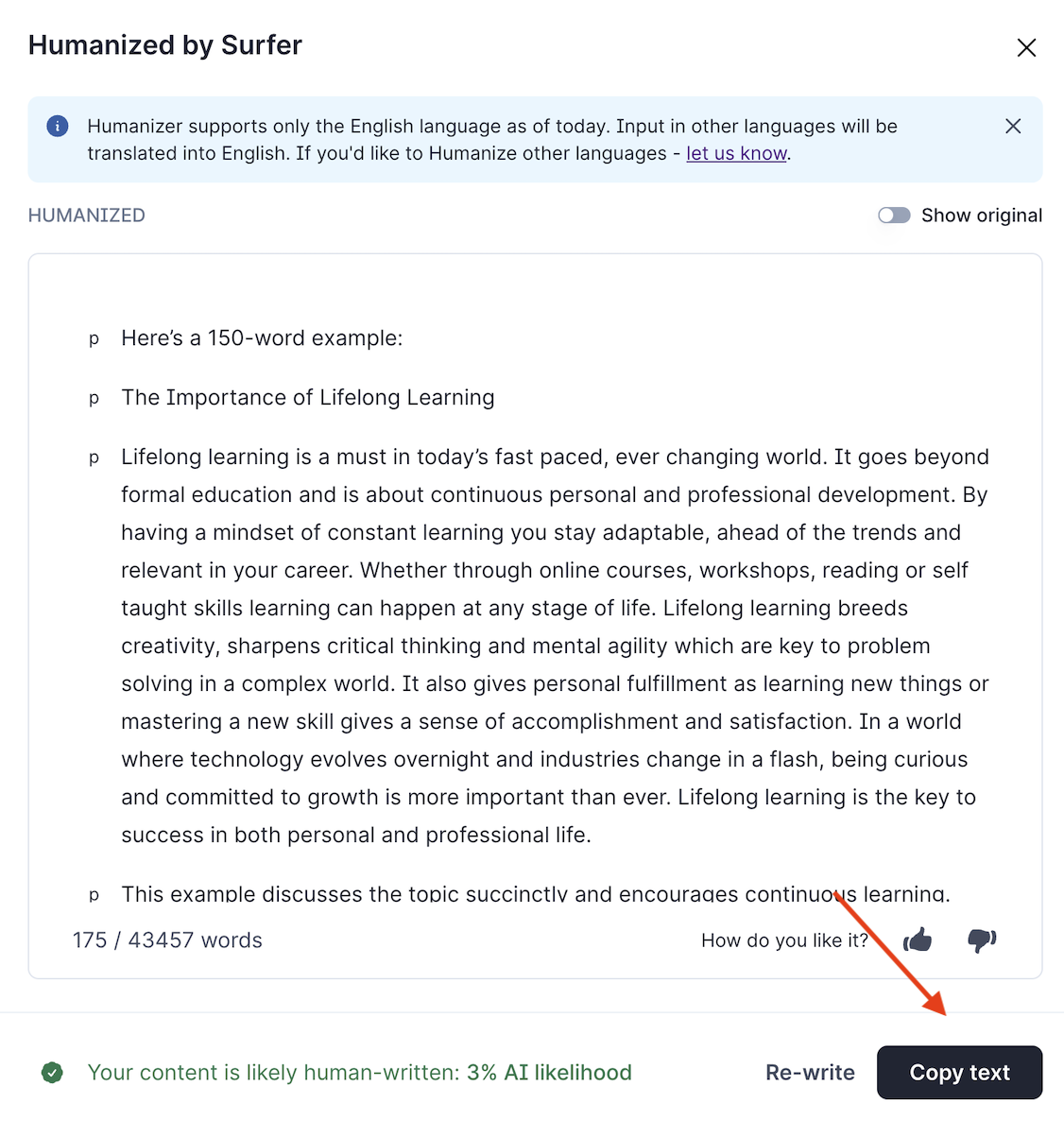 Also, remember that the Humanizer limit is joint, regardless of whether you use it in Surfer or ChatGPT.